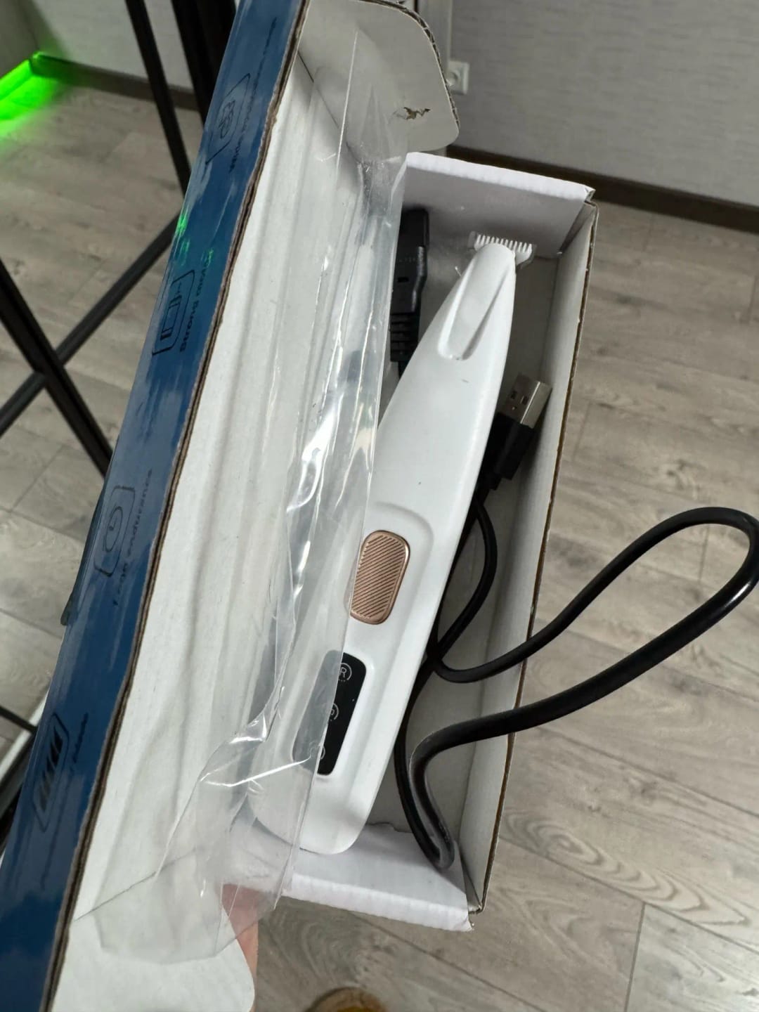 This is my first trimmer, and it suits me completely. Dog weighing 12.5 kg. I cut my paws perfectly, even on the chest and ass that I tied up, I’m not a groomer, of course, but it turned out fine. And did it all on one charge! Not very noisy. Included a brush and some kind of liquid, no instructions. And charging in the trimmer itself is non-standard, if it breaks, I don’t even know if I can find it.